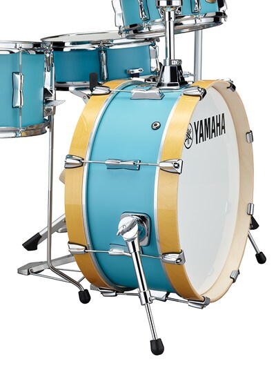 This kit combines the diameter used to achieve the rich bass tones of a regular set with a shallow body that allows the drummer to save space.