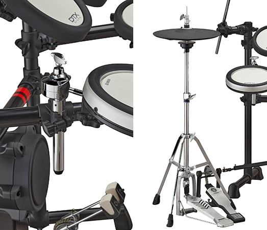 Yamaha's HS650A hi-hat stand is included with the DTX6K2-X and DTX6K3-X. All of the DTX6 Series also uses Yamaha's traditional ball clamps for snare pads, making fine adjustment of settings easy.