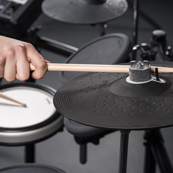 The ride cymbal also offers positional sensing. This means the sound changes depending on where the cymbal is played. This feature is possible thanks to the high-definition long sampling of the cymbal sounds featured in the DTX-PRO sound module. It is perfect for accurately reproducing delicate cymbal work.