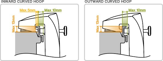 Works for most popular hoops. Not recommended for wood hoops
