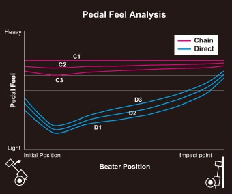The direct drive creates a direct link between the footboard and the beater, conveying the movement of the drummer's foot to the beater instantaneously. The link can be slid into three positions,allowing the drummer to fine tune the pedal's action to match their preferred performance.