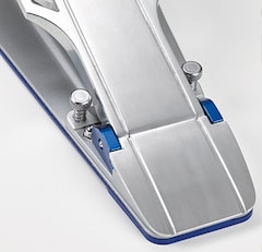 The hinge base and cover (blue parts) are independently smoothed and precisely fabricated before assembly, allowing smooth foot board performance.