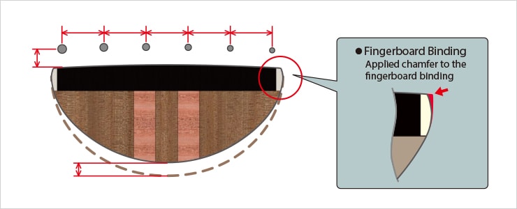 A reevaluation of string spacing, string height, fingerboard binding, and neck taper led to a new neck shape that better fits today’s traditional players. The new design offers stable grip and smooth playability over the full length of the neck.