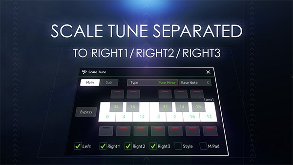You can now choose whether to apply the Scale Tune to each part individually for Right 1, Right 2 and Right 3, in the Scale Tune display.