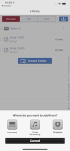The song data can also be transferred to a computer or Dropbox*, and data from other sources can be imported to the instrument from a computer or Dropbox.