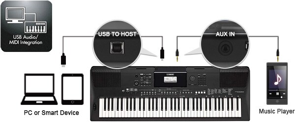 The PSR-EW410 features audio transfer through the USB TO HOST terminal*. You can record your performances to your computer or smart device.