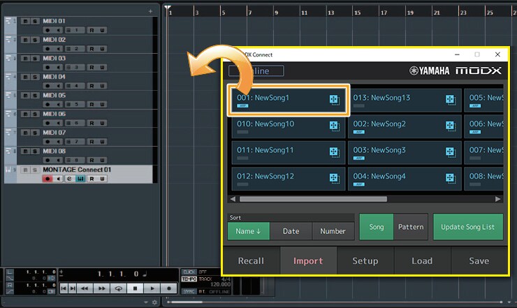 Just drag-and-drop to Import Song data from MONTAGE to DAW
