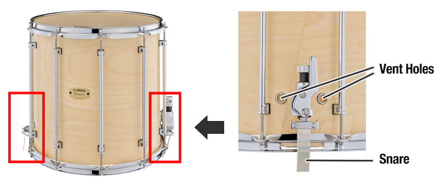 The CFM1414 is a 14-inch concert field drum that has been designed for outdoor performance. It features a deep body that contributes to ample volume and a fat tone. Based on the CSM series design that is popular for its rich resonance and warm tone, the CFM1414 features vent holes and a snare bed that have been modified to enhance snare “snap” and response with this model’s deeper body.