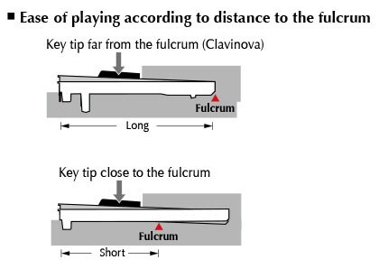 When playing a digital piano, the back area of the keys may prove to be a challenge to full musical expression. This is because the back of the key is closest to the fulcrum of the action. The closer to this pivot point that you strike the key, the less leverage you have and the more strength you need to apply. The greater length of GrandTouch keys give the player MORE leverage, allowing for better expressive control, even at the backs of the keys. This is the same support length found on the Yamaha S3X premium grand piano (as of April 2017), and is the longest support length used on any digital piano.