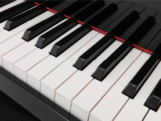 The white keys are fashioned from moisture-absorbent Ivorite™ for a feel and color similar to natural ivory. The black keys are made of the finest natural ebony. Each key is hand crafted from the finest spruce and precisely measured, weighted and balanced to optimize power and control of your playing dynamics in every note.