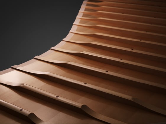 Each soundboard is fashioned from the top one percent of European spruce. This strong, lightweight wood is hand selected for its ability to transform string vibrations into beautiful, resonant sound. The shape of the crown has been refined to add a deeper, more resonant mid-bass sound and the width, height and position of the sound ribs has been modified to increase dynamic range.