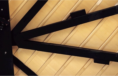 The CX Series adopts the same crown construction technique as on the renowned CFX. The soundboard is the source of the piano's sound and features a beautiful, curved crown. The manufacture of this crown is the most important factor in crafting a piano, because of its influence into how the sound radiates into the air. In the CX Series, we revamped the method of adhering the soundboard, ribs, and bridge for the C3X and the models above—models which require a great deal of projection—and have adopted the same crown making method as the CFX concert grand piano, resulting in a more luxurious sound and enhanced response.