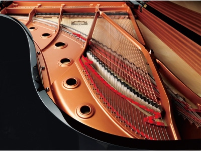 In order to produce the most rich, resonant tone, we’ve augmented the thickness of the back frame, which in essence is the foundation of the instrument. When playing strong fortissimo passages, the force exerted on the instrument causes it to bend slightly, losing energy. The back beam is the skeletal part of the piano that accepts this force and transforms it into deep, reverberant sound. On the C3X and above, this back beam is approximately 20% thicker than before, adding significant strength to the sound.