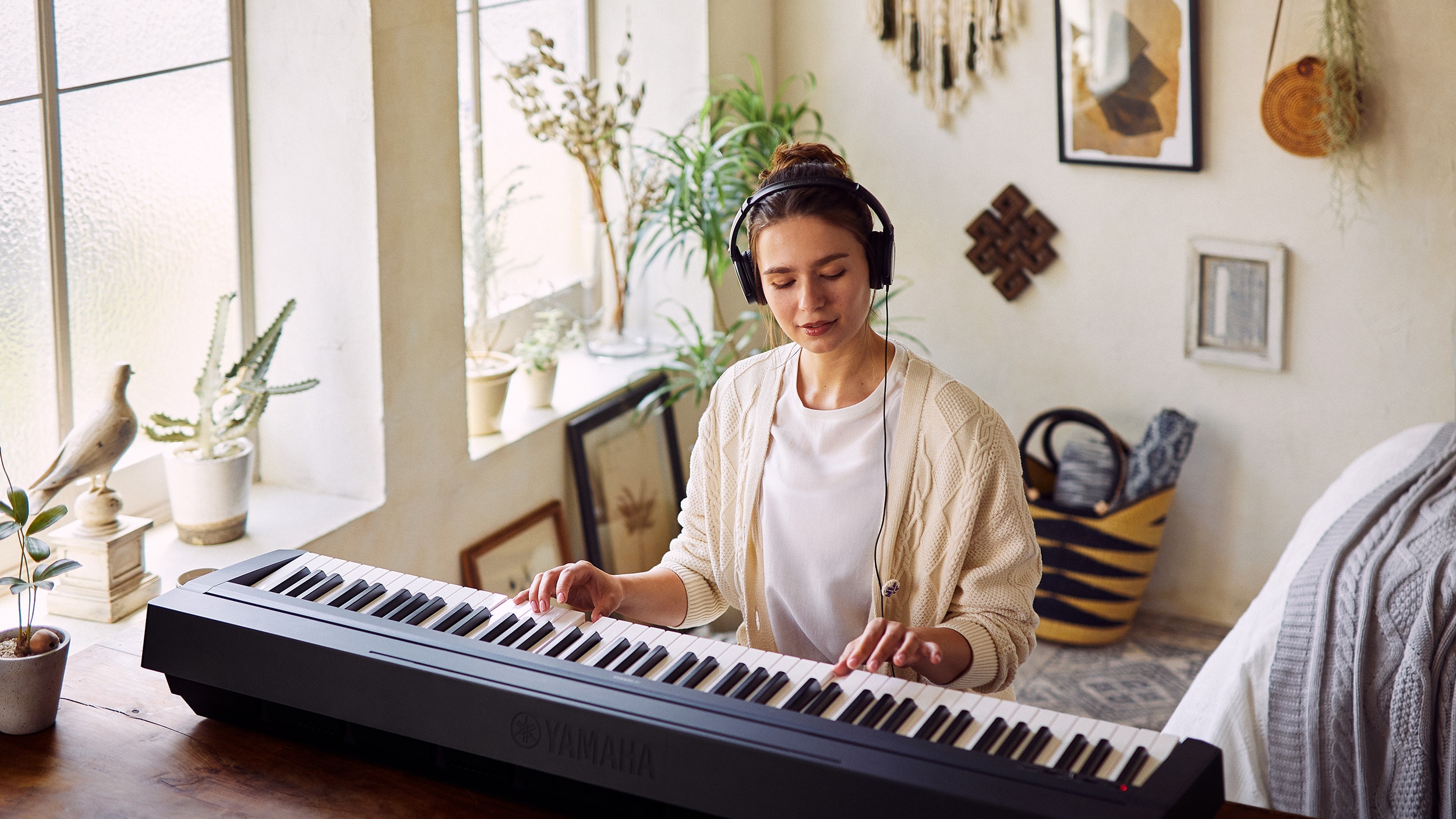 The P-45 features a graded hammer standard (GHS) keyboard. The feel of the keyboard gradually changes according to the register, so that it feels heavier when playing bass parts and lighter when playing treble parts. The piano also features a keyboard with a natural feel, with black keys that feature a matte finish for authentic piano playing close to that of an acoustic piano.