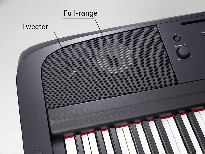 The two-way system features round 12-cm speakers for impressive mid and bass, and a tweeter for dazzling treble. The piano sound is designed to feel immersive from the bench, and the accompaniment is optimized for impact.
