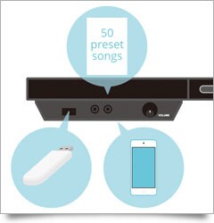 Enjoy playing along with any of the 50 preset songs that come with the TransAcoustic™, accompanying your playing with songs you have recorded yourself, or even with commercially available songs played back through the sound board. You can be as creative as you want with this feature—you can, for example, play a duet with yourself—or you can just sit back and listen to the playback.