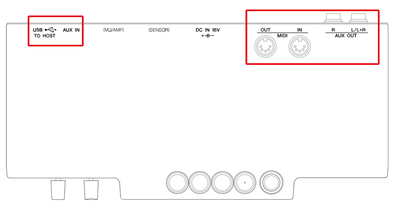The USB TO HOST terminal allows you to connect to a computer or portable device and record high-quality audio without the need for an additional interface, while AUX OUT allows sound to be output to a variety of external devices (e.g. stereo components, IC recorders, speakers with built-in amplifiers, stereo systems), and AUX IN allows listening to sound from external devices (sound source modules and music players). MIDI OUTPUT transmits performance information to external devices such as synthesizers. MIDI IN allows the instrument to receive and playback performance information from sequencers using the tone generator of the TransAcoustic™ TA2.