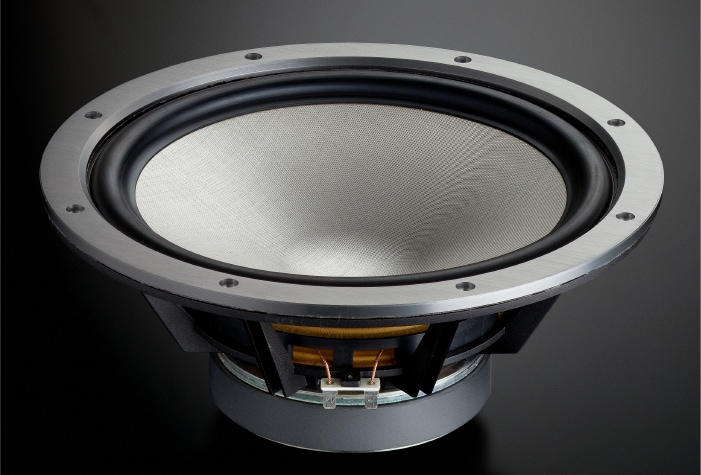 The JA-3132 30 cm (12”) woofer features a 100% ZYLON® cone without a centre cap. It was designed to offer a wide frequency range unprecedented for a 30 cm (12”) woofer, in order to provide not only a flawless continuity in tone from the woofer to the midrange and to the tweeter as well as acoustic sharpness, both of which was made possible with the use of the identical material for all drivers, but also optimum performance with the higher low-pass crossover frequency of 750 Hz. The woofer's aluminium die-cast frame achieves high rigidity while minimising air resistance at the rear, thanks to the state-of-the-art design based on rigorous FEM analysis of the frame mounted in a prototype enclosure.