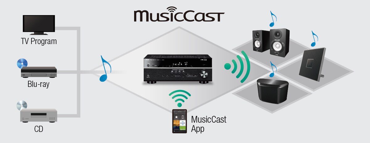 MusicCast est une révolution dans le monde de l'audio, permettant d'utiliser tous vos produits MusicCast ensemble ou séparément. Contrôlez votre installation depuis une application intuitive, rapide et simple. Profitez de votre barre de son, enceinte multiroom, amplificateur Home Cinema, HiFi ou autre, selon vos envies et besoins. Créé par Yamaha, MusicCast c'est tout l'audio, partout, pour tous.