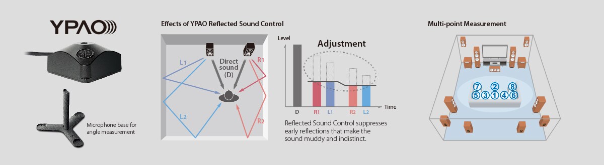 Optimisation Sonore YPAO™-R.S.C. avec 3D, Calcul d'Egalisation 64-bit de Précision et Mesure des Angles