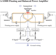 L’A-S3000 dispose de transmission de signal totalement symétrique. Les circuits de contrôle (volume, égalisation, etc.) de la pré-amplification adoptent un traitement totalement symétrique.