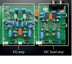 L’amplification phono est constituée d’un Head Amp MC et d’une Amp d’égalisation, chacun à configuration discrète, pour un son riche à la musicalité prononcée lors de la lecture d’enregistrement vinyles.