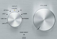 Le bouton rotatif de sélection des entrées vous permet de naviguer simplement entre les différentes sources. Les LED affichent clairement la source en cours de sélection, pour une lecture immédiate même dans le noir.