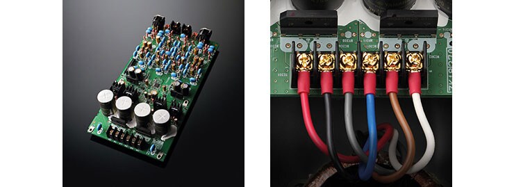Le design interne du CD-S2100 ne dissocie pas les cartes d’alimentation électrique, ce qui inclus le transformateur d’alimentation ; les condensateurs sont montés directement sur les cartes respectives, numériques/analogiques. Ainsi, une configuration originale intégrant les circuits d’alimentation a été adoptée. L’élimination des câbles d’alimentation vers chacune des cartes et l’assemblage direct ont permis de réduire les pertes liées aux connexions, en plus d’atteindre une impédance plus faible. De plus, le câblage à partir du transformateur d’alimentation utilise le même type de connexion à vis que ceux de l’amplificateur intégré A-S2100. Une connexion directe sans soudure permet de parfaire les points de connexion.