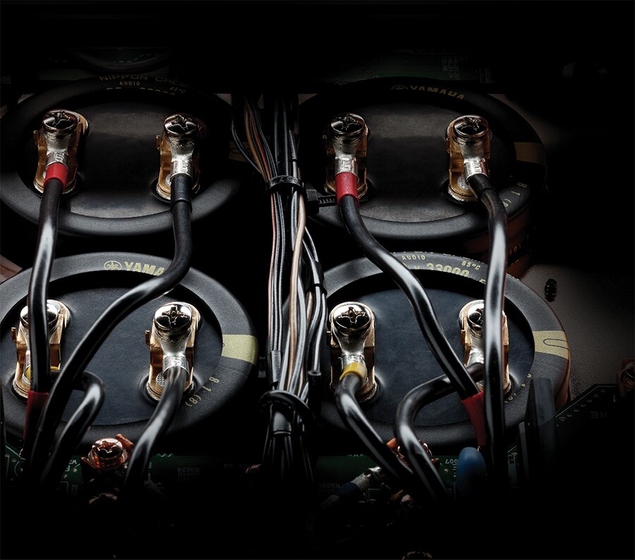 Le M-5000 utilise des connecteurs d'enceintes à vis surdimensionnés pour des connexions faciles et sûres. Sculpté dans un bloc de laiton pur, le design Yamaha original met en évidence l'attention portée au détail et la qualité supérieure du produit.