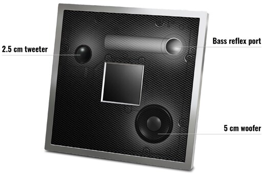 Full, dynamic sound you wouldn’t expect from such a small package. The ISX-18 features a two-way, dual-speaker system with a 2.5 cm (1") tweeter and 5 cm (2") woofer. With a high-quality magnet and a special bass reflex port, the small enclosure puts out remarkably powerful sound with excellent bass response — taking full advantage of Yamaha’s famed audio expertise and technology.