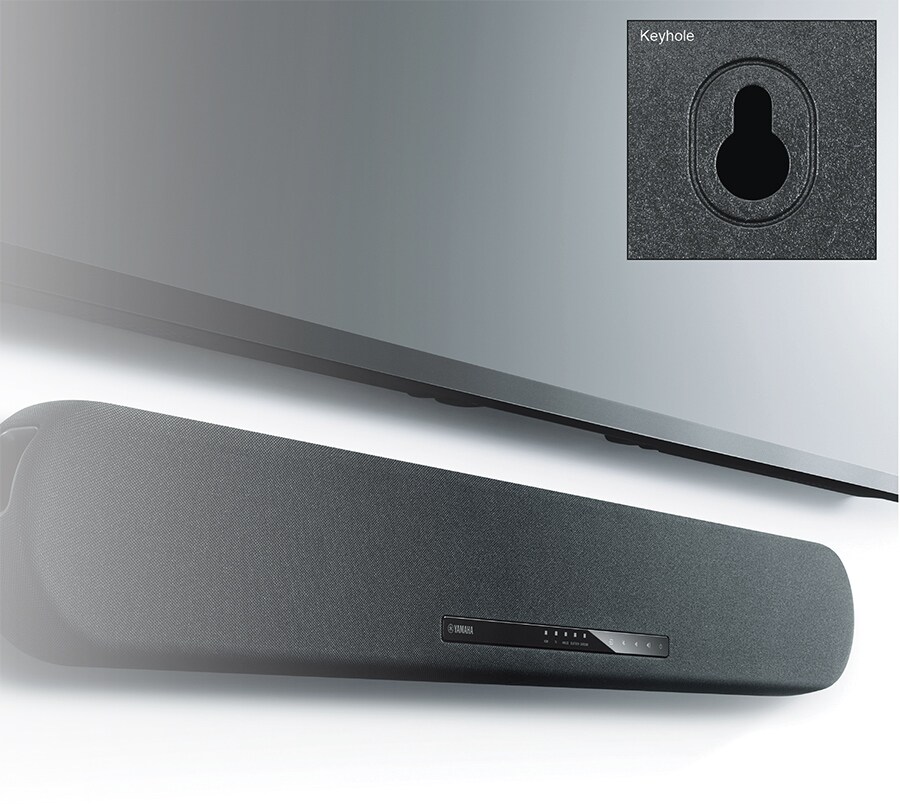 Dispose d’un système d’accroches pour une installation murale pratique et d’un gyroscope intégré pour optimiser le son en fonction de la position verticale ou horizontale de la barre de son.
