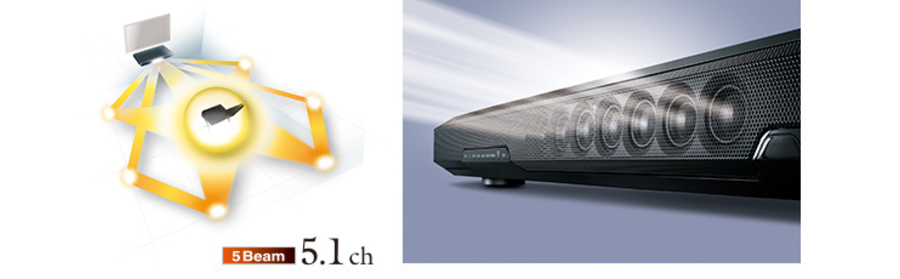 - Technologie Digital Sound Projector avec huit enceintes en ligne pour un son surround 5.1 authentique