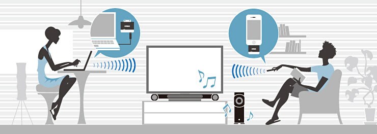 Le transmetteur sans fil YIT-W12TX, inclus avec l’YSP-4300, vous permet de profiter librement de votre musique stockée sur votre iPod/iPhone/iPad ou Mac/PC. La technologie Yamaha AirWired délivre une transmission PCM non compressée pour un restitution claire, constante et précise.