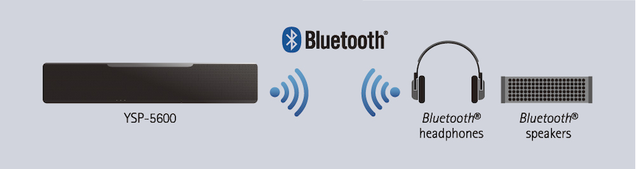 Le YSP-5600 est équipé de la toute dernière technologie Bluetooth, pour des connexions sans-fil toujours plus pratique. Vous pouvez envoyer la musique du YSP-5600 vers un casque Bluetooth, ou d’autres enceintes Bluetooth.