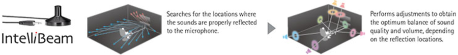 Le YSP-5600 utilise des options d’optimisation de faisceau et d’optimisation audio grâce au microphone IntelliBeam fourni, permettant d’accélérer la phase de réglages et de réaliser un calibrage sonore précis, en phase avec votre environnement d’écoute. Ces deux options combinées répondent à l'appellation IntelliBeam. La position des faisceaux audio hauteur peuvent également être réglés automatiquement. Ainsi, le YSP-5600 peut reproduire l’ambiance d’une restitution live, peu importe la pièce.