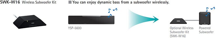 Le kit SWK-W16 optionnel peut être raccordé à un subwoofer pour connecter ce dernier sans-fil. Vous n’aurez besoin d’aucun câble entre le projecteur sonore et le subwoofer, multipliant vos options sans augmenter l’encombrement.