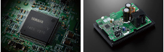 The 1kW output power digital amplifier employs a drive stage using the all-new Yamaha digital amplifier IC and a high current MOS-FET discrete push-pull output stage. Careful sound quality tuning included the use of a luxurious triple-wound Litz wire high-capacity output coil and capacitors especially designed for audio, resulting in optimum high quality and high power, for use in theater or HiFi environments.