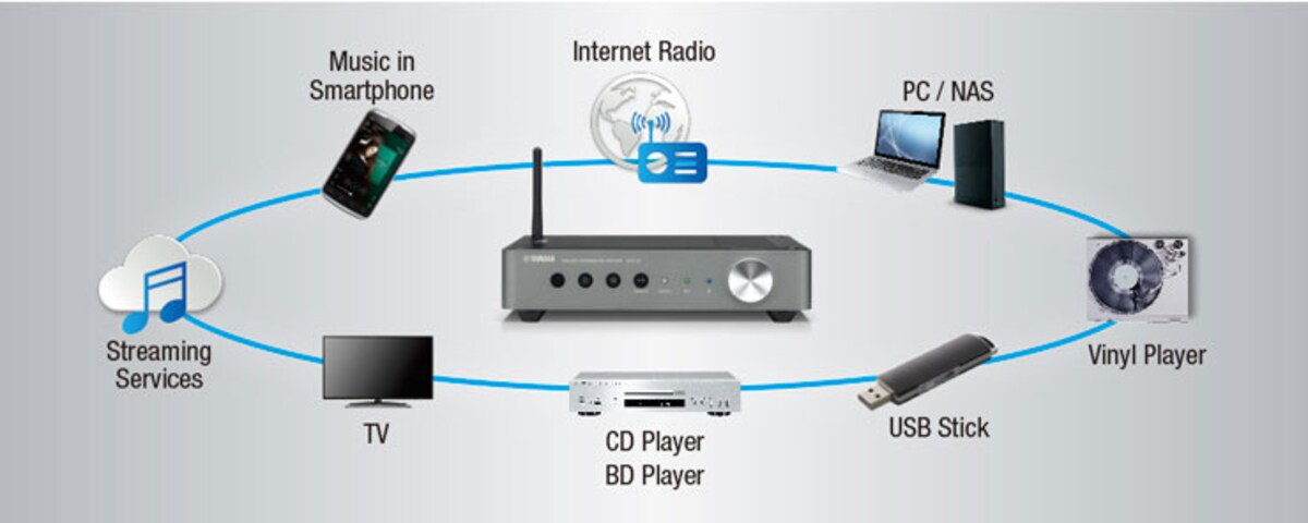 Le WXC-50 représente l'ouverture du système MusicCast Yamaha. Grâce à se connectivité étendue, il permet d'accéder à une large gamme de contenus audio, stockés sur un smartphone ou en provenance de services de streaming musicaux.Performances et fonctionnalités sont ici associées pour profiter de la musique comme vous l’aimez.