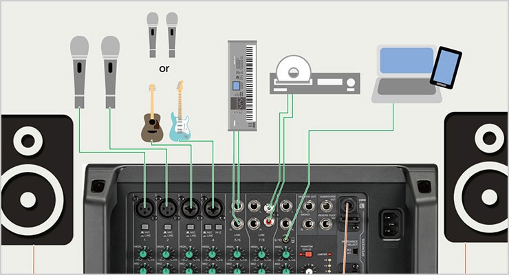 You can connect microphones, line-level devices like keyboards and portable music player. Also phantom power and high-impedance input capability is available for high-performance condenser microphones or connecting guitars directly without any external gear.