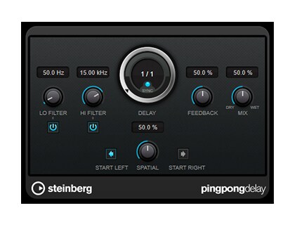 Il s'agit d'un effet de délai stéréo qui alterne chaque répétition de délai entre les canaux gauche et droit. La ligne de retard utilise des paramètres de temps de retard basés sur le tempo ou librement spécifiés.