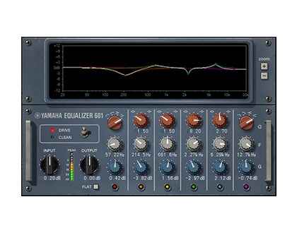 L'Equalizer 601 émule les caractéristiques d'un égaliseur analogique des années 1970. Vous pouvez obtenir une sensation de dynamisme en reproduisant la distorsion propre aux circuits analogiques. Ce plug-in fonctionne en mode mono ou stéréo, selon la configuration des canaux du rack.