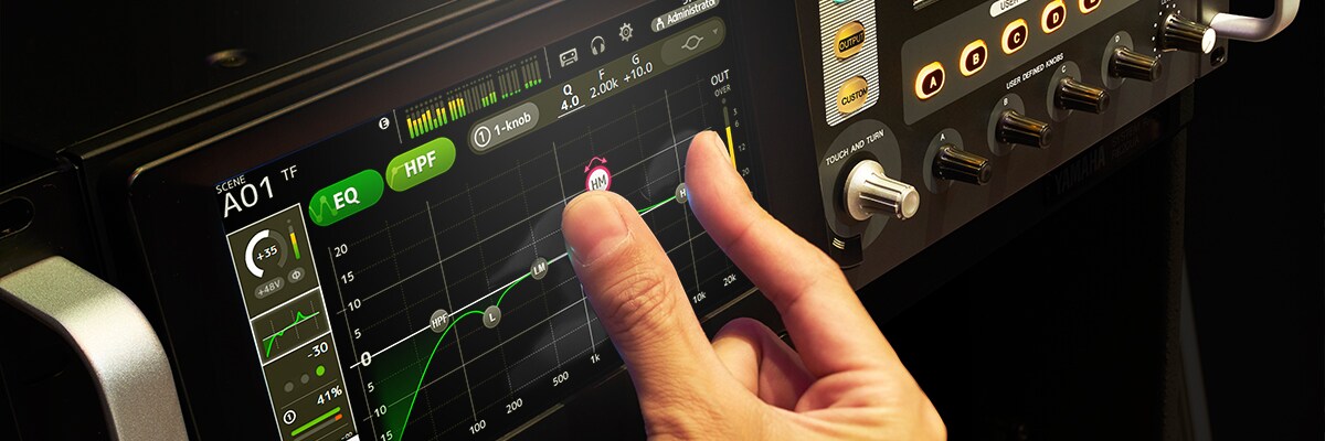 Lors du développement de la Série TF, les ingénieurs de chez Yamaha sont partis des interfaces utilisées sur leur consoles haut de gamme, en ajoutant un contrôle intuitif optimisé pour l’utilisation de panneaux tactiles – un outil désormais familier dans bien des applications. L’interface innovante des consoles de la Série TF permettent d’effectuer la plupart des opérations par l’intermédiaire du panneau tactile seulement ; elle deviendra rapidement une seconde nature pour un grand nombre d’utilisateurs. Que vous ayez déjà travaillé sur des consoles numériques Yamaha, ou uniquement sur d’autres marques, voire sur des consoles analogiques, ou encore jamais utilisé de console du tout, les TF vous apporteront les résultats désirés rapidement et efficacement, grâce à un workflow efficace et facile. Les contrôles physiques disposés autour du panneau tactile apportent encore davantage de polyvalence et de précision.
