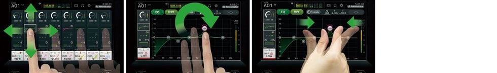 Affinée pour assurer l’utilisation la plus fluide possible via le panneau tactile, l’interface utilisateur des consoles TF autorise un workflow sans heurt – un atout de taille dans toutes les situations de mixage. Le contenu de l’écran a été spécifiquement conçu pour assurer une accessibilité facile et directe, et sa disposition autorise le mixage le plus naturel et le plus efficace. Grâce à l’écran tactile, vous mettez en forme le son du bout des doigts !