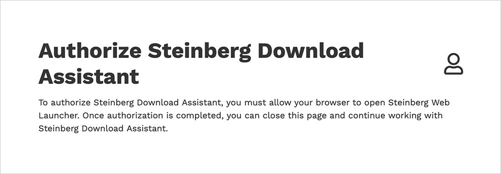 Vous verrez un écran d'authentification vous demandant la permission d'ouvrir l'assistant de téléchargement Steinberg dans votre navigateur. Une fois que vous aurez approuvé cette demande, vous pourrez utiliser Steinberg Download Assistant.