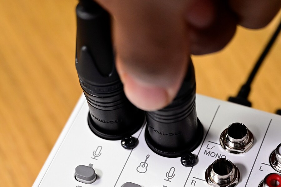 L'AG06MK2 permet d'utiliser deux microphones à condensateur simultanément.