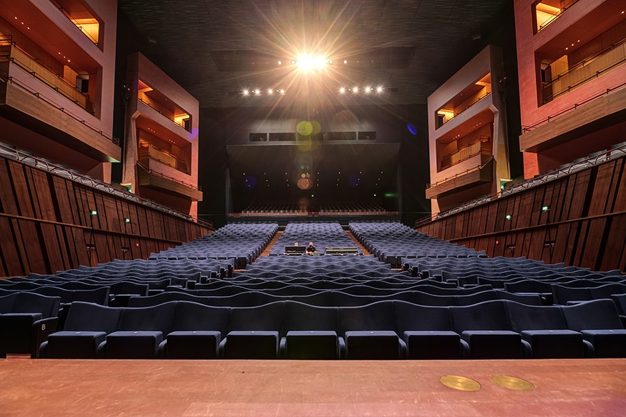 With raked stalls and four seating ‘towers’ on each side, the 1328-capacity Grand Auditorium at Philharmonie Luxembourg combines the acoustics of classic shoe-box concert halls with the atmosphere of a Shakespearean theatre. The smaller Salle de Musique de Chambre features curved walls and can host audiences of 313 people, while the venue’s four foyers can also be used for performances.
