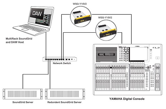 The WSG-Y16 V2 is a Mini-YGDAI card which makes it possible to run Waves plugins on selected Yamaha mixing consoles, using Waves SoundGrid technology.Together with a switch, a SoundGrid DSP server, and a Mac or PC, the WSG-Y16 V2 lets you process 16 channels of audio in super-low latency using Waves and third party SoundGrid-compatible plugins. With a rich feature set including a redundancy and recovery safety net, MIDI control from the console, plus scalability and expandability, the WSG-Y16 V2 is an essential asset to any compatible Yamaha mixing console. WSG-Y16 V2 also features clock Sync over Ethernet for syncing multiple consoles and performing digital splits.