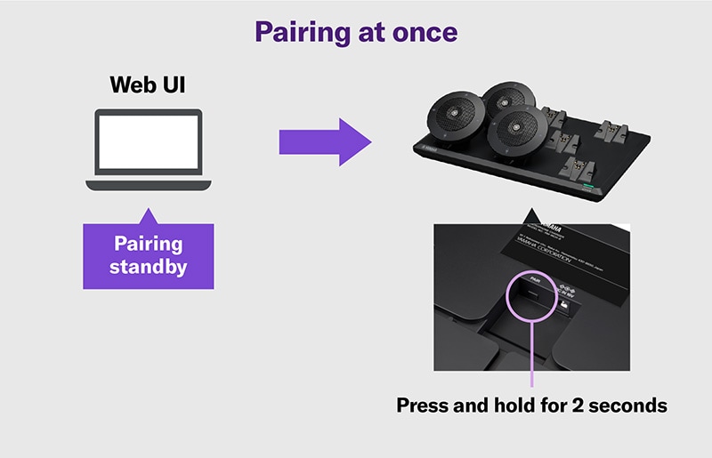 - L'assistant de configuration de l'interface Web permet de configurer sans effort, d'appairer les microphones, d'acheminer l'audio et de gérer d'autres aspects du système.