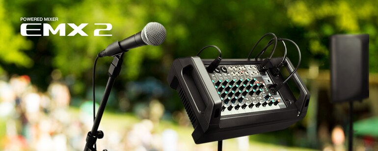 L’EMX2 est à la fois une console de mixage et un amplificateur de puissance. Légère et portable, elle se transporte très facilement, et se montre particulièrement utile dans de nombreuses situations.