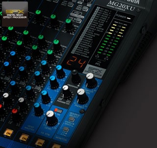 Pour les applications musicales et non-musicales, le traitement des effets ajoute du poli et du professionnalisme au mixage. Les modèles MG X / XU sont équipés du célèbre processeur multi-effet numérique SPX de Yamaha, qui offre une suite complète de 24 effets numériques modifiables, parfaits pour améliorer votre mixage, qu'il s'agisse d'ajouter de la profondeur à une intervention orale ou d'insuffler une nouvelle couleur et une nouvelle atmosphère à une performance de groupe en direct. En particulier, la réverbération et le délai de haute qualité étendent la qualité spatiale du son avec un réalisme et un naturel remarquables. Vous pouvez même connecter un commutateur au pied FC5 en option pour contrôler l'activation et la désactivation des effets. (MG10X / 10XU / 10XUF / 12X / 12XU / 12XUK / 16X / 16XU / 20XU)
